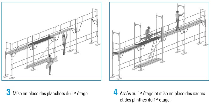 L’utilisation des EPI, équipes de longes avec absorbeur aux normes en vigueur, doit être prévue dès le 1er niveau, et la structure doit être auto stable jusqu’au 1er niveau d’amarrage.